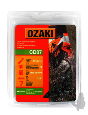 Zaagketting OZAKI, halfhaaks, in blisterverPakking: .325" - .063 (1,6mm) - 74 schakels.