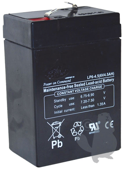 GEL/AGM batterij 6V, 4,5A voor werklampen, alarmsystemen en universele toepassingen. L: 70, br: 48, H: 106mm, + links.