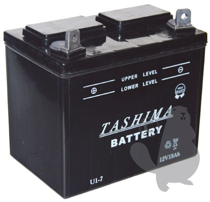 Batterij voor zitmaaiers 12V, 18A. L: 195, br: 130 H: 185mm, + links. (geleverd zonder zuur).