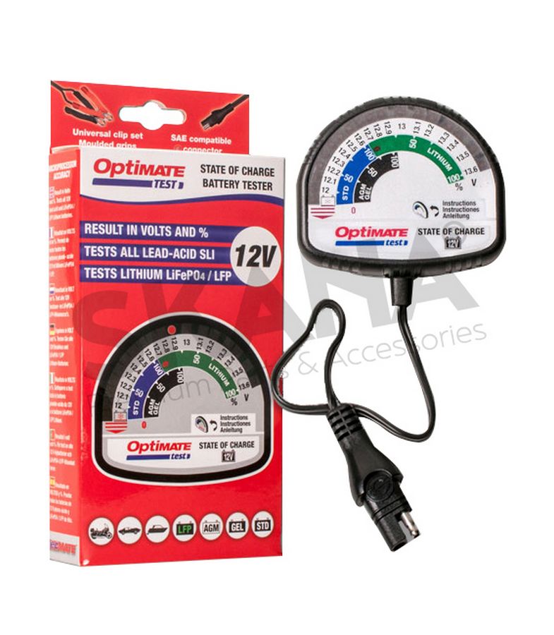 Accutester OPTIMATE - Tester voor alle 12V lood-zuur en lithium LFP/LiFePO4 accu’s - Laad status, test resultaat in Volt en in %.