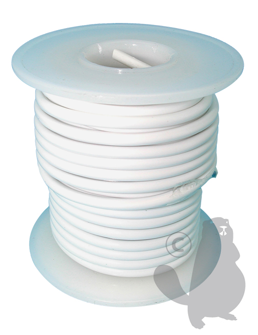 Soepele elektrische kabel, 1 x 1,5 mm², geschikt voor 12 en 24V installatie, op rol van 7,6 meter - kleur wit.
