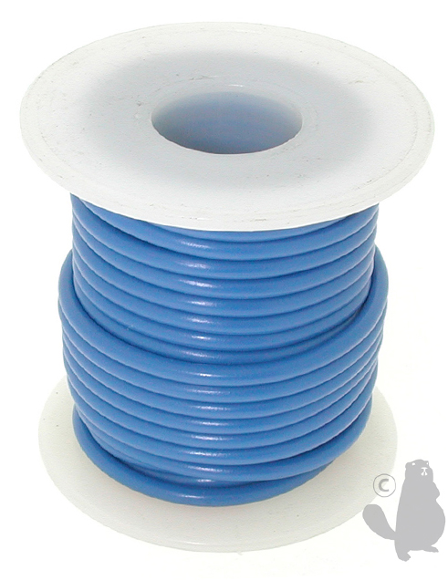 Soepele elektrische kabel, 1 x 1,5 mm², geschikt voor 12 en 24V installatie, op rol van 7,6 meter - kleur blauw.