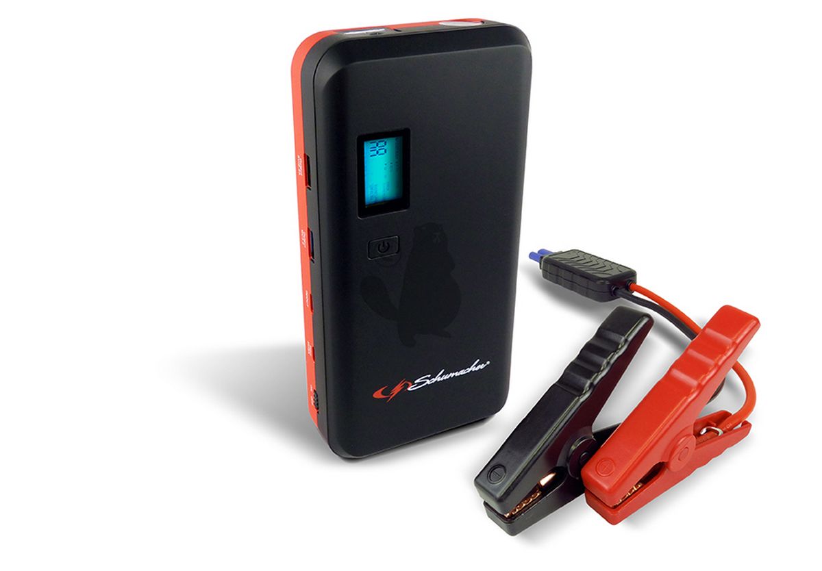 "Booster and Power pack SCHUMACHER®. Compact model met pocketformaat met 10.000 mAh lithium-polymeerbatterij. LCD-scherm, dubbele 2.1A USB-poort voor het opladen van smartphones en tablets. Geïntegreerde LED-verlichting (3 modi). Ultraveilige slimme kabels (tegen omgekeerde polariteit, kortsluitingen, lage voltages, hoge temperaturen en tegenlading). Wordt geleverd met draagtas.