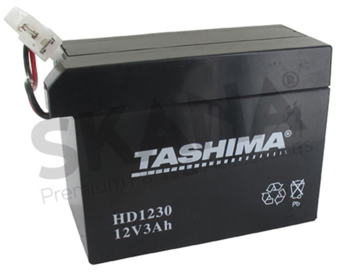 Batterij tuinbouw 12V, 3A. L: 110, br: 55, H: 80mm. Speciale aansluiting.