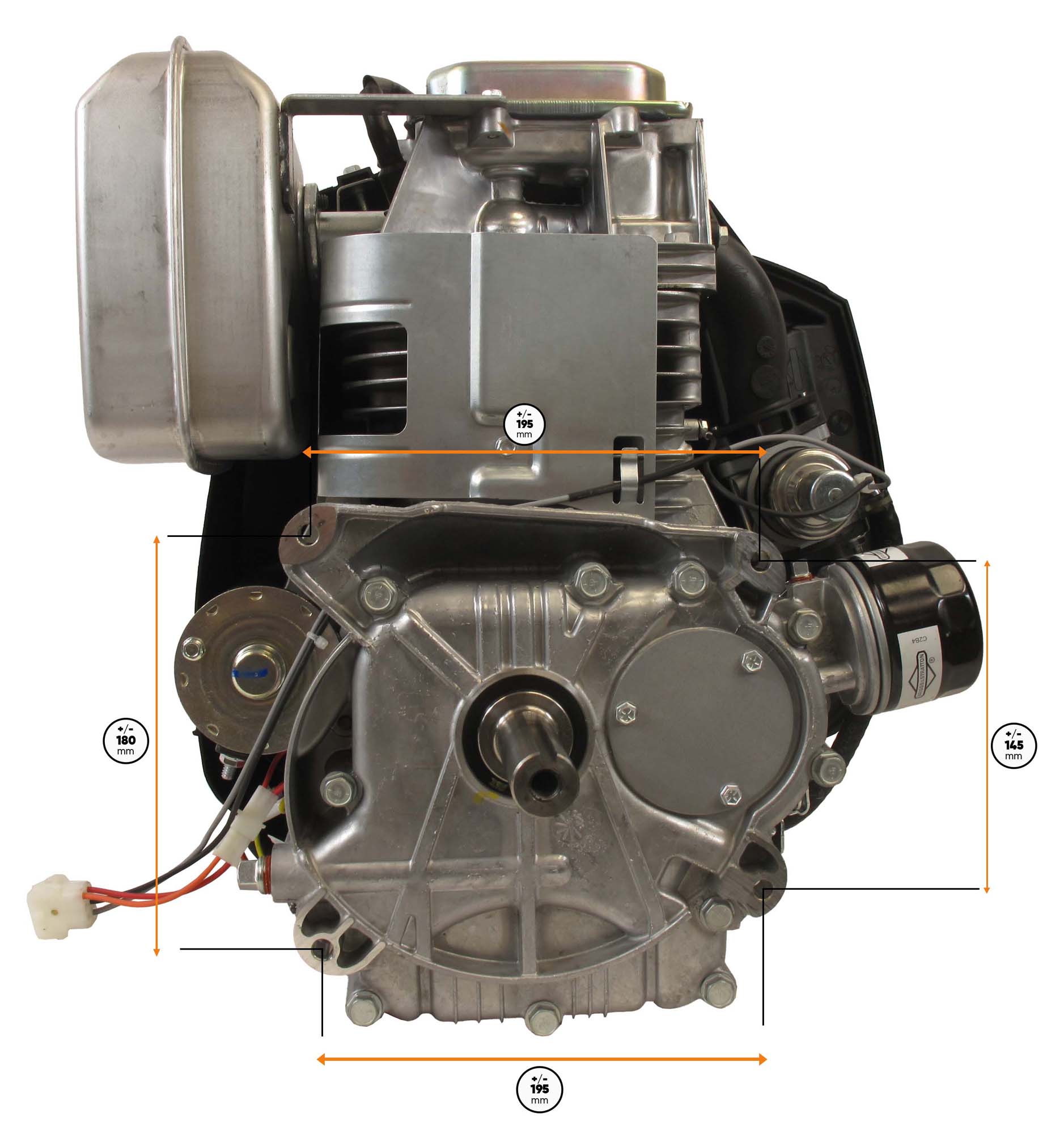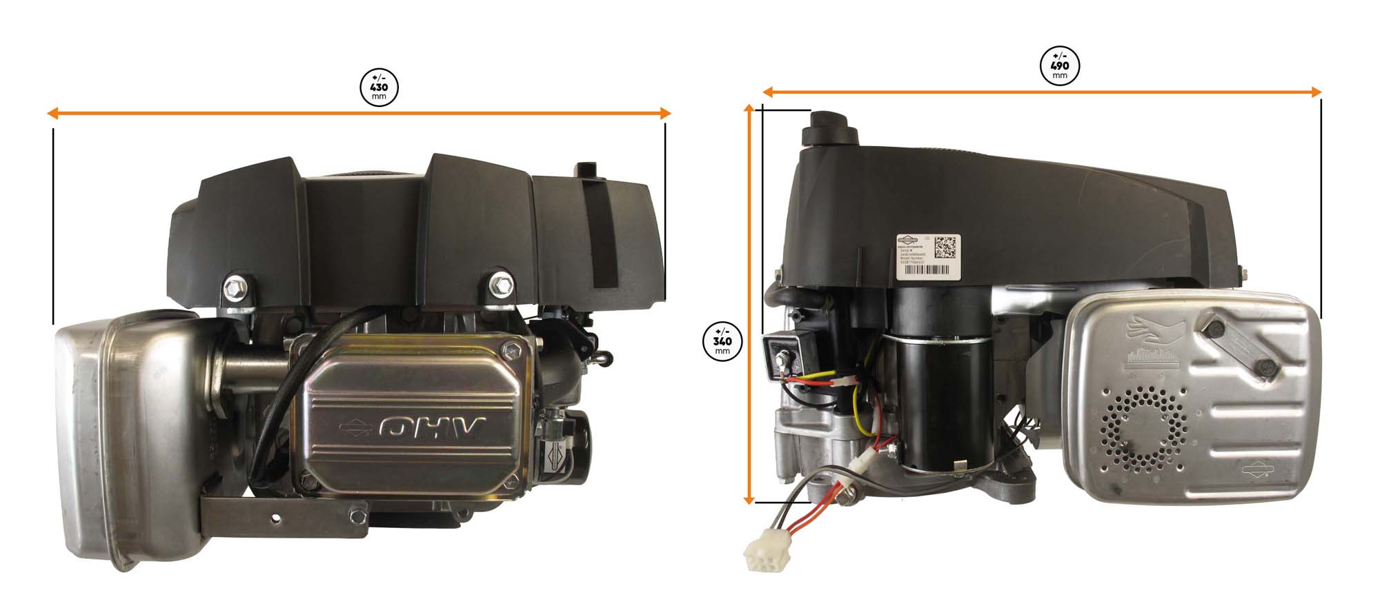 BRIGGS & STRATTON motor professioneel seriemodel 19 pk 544 cc met verticale as 25,4 x 80 mm, E-start 12V starter, 9 A dynamo, Choke-A-MATic, oliefilter, brandstofpomp, uitlaat.